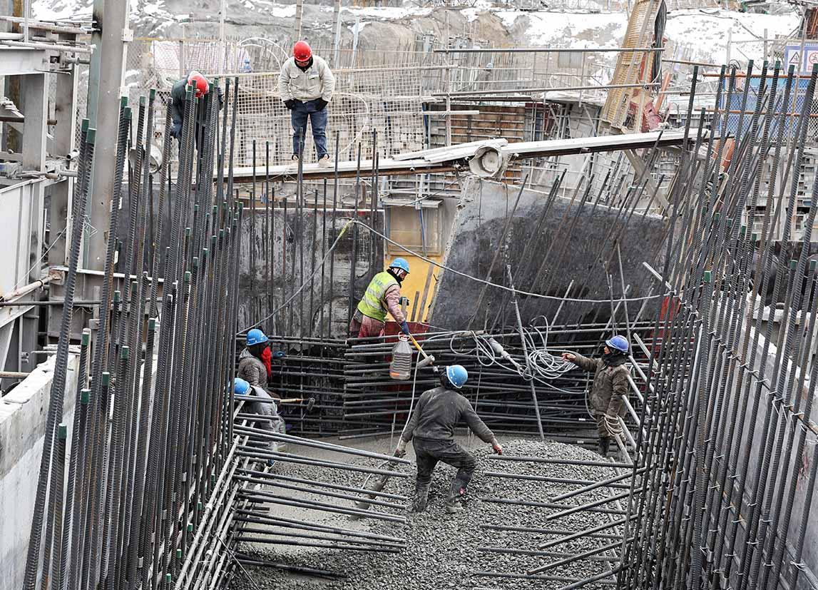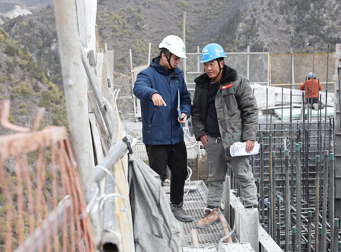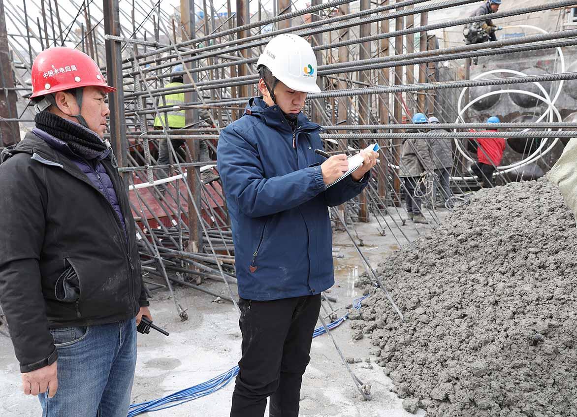 “可以执行,注意安全!”中国水电第四工程局有限公司东庄施工局现场负责人何文成手持对讲机不停地回复着另一端的请示和汇报。来自江苏的他在工地已经干了近三年,对他来说,每天早上和工友们一起准时到施工现场已经习以为常。“第一个任务就是开班前会,根据仓号情况进行分工,钢筋工、木工、冲洗工等各就其位开始作业。”他说,大坝浇筑已经到了最关键期,所以春节期间留下来和工友们一起加班,在保障安全的前提下,全力以赴抢抓工程进度。“参与国家级水利工程大坝建设,特别是看着自己浇筑的大坝一点一点长高,感觉成就感满满。”