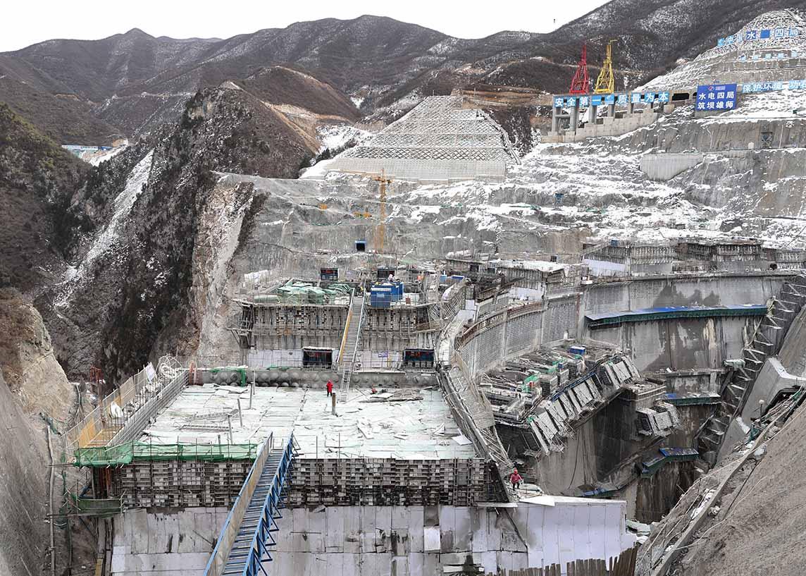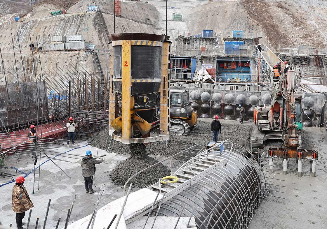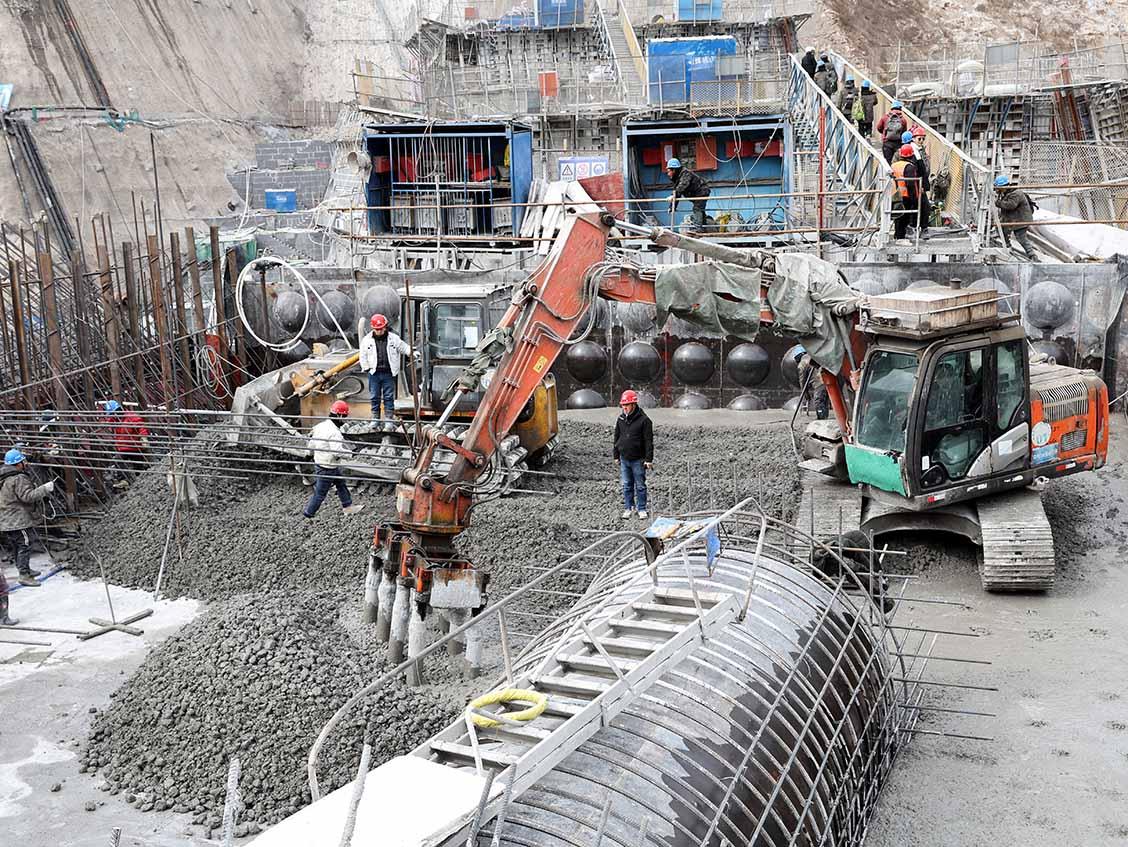 “2025年6月底前,也就是主汛期前,大坝最高坝段浇筑至758米,最低坝段浇筑至749米,接缝灌浆至712.0米以上。”白炳男一边走一边介绍说,2024年大坝混凝土共计浇筑了304仓,浇筑完成78.3万立方米,大坝混凝土最高坝段浇筑至高程752米,最低坝段浇筑至高程734米;坝体接缝灌浆至高程683米,全部超额完成了年度任务。在大家齐心协力、攻坚克难中,水垫塘、二道坝工程全面完工,多项枢纽工程节点目标圆满完成。
