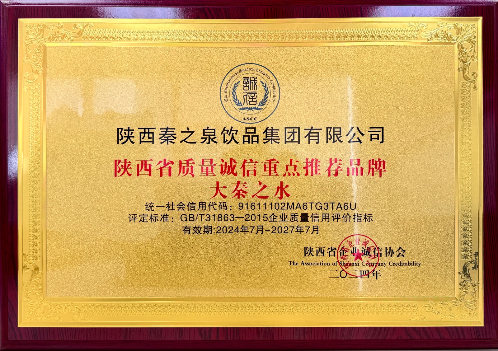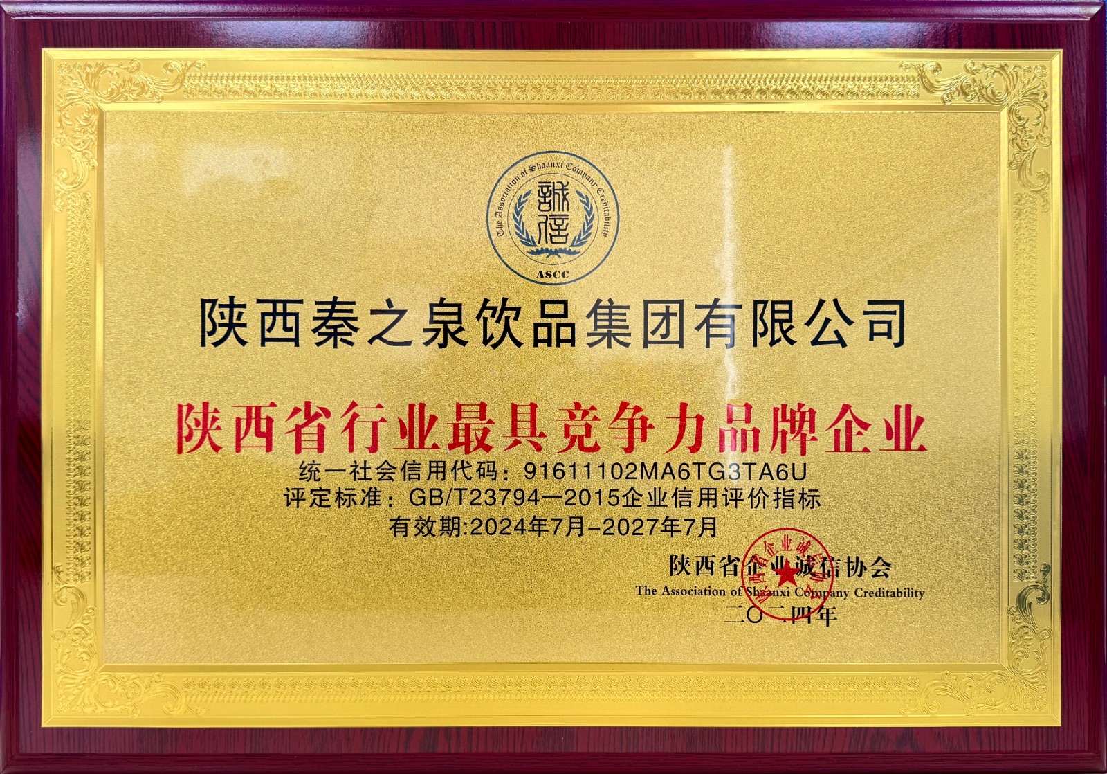 7月10日,陕西秦之泉饮品集团荣获陕西企业诚信协会“陕西省行业最具竞争力品牌企业”和“陕西省质量诚信重点推荐品牌”荣誉。