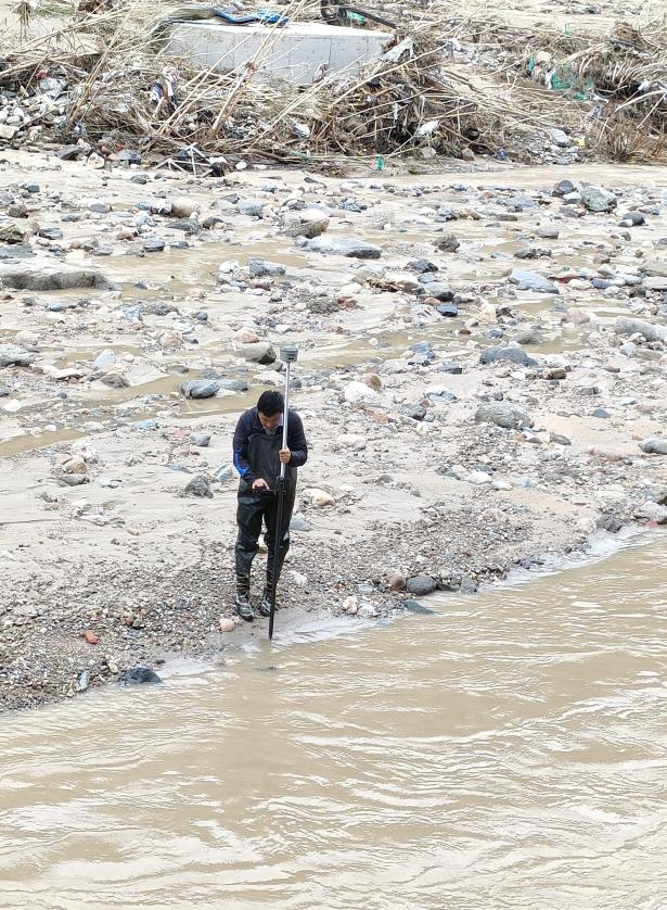 同时,水环境设计院技术专家到达一线后,立刻开展洪水灾害调查,统计受灾面积和洪水影响范围,连夜商讨制定抢险方案,测量工作人员利用无人机航测开展断面测量和洪痕调查,统计受灾情况,为灾情分析和隐患排查提供技术支持和数据参考。